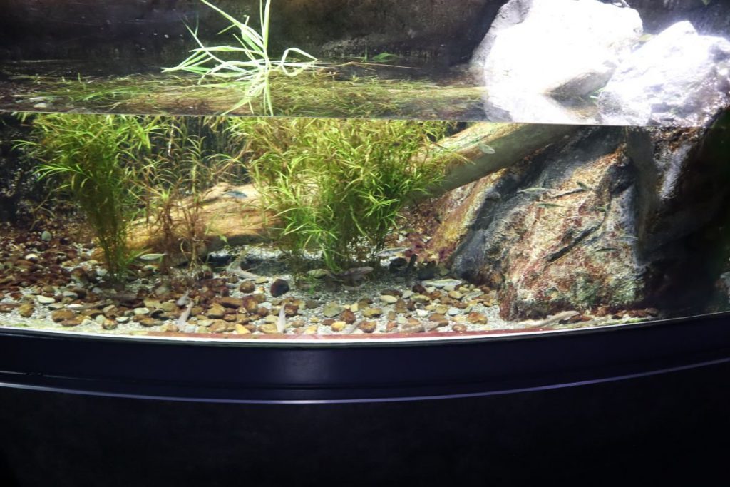 私のオススメは上流を再現したサクラマス、アメマス、ハナカジカを展示した水槽で、ガラス面・レイアウト・水・照明が綺麗で、展示されている魚が綺麗に見えます。
