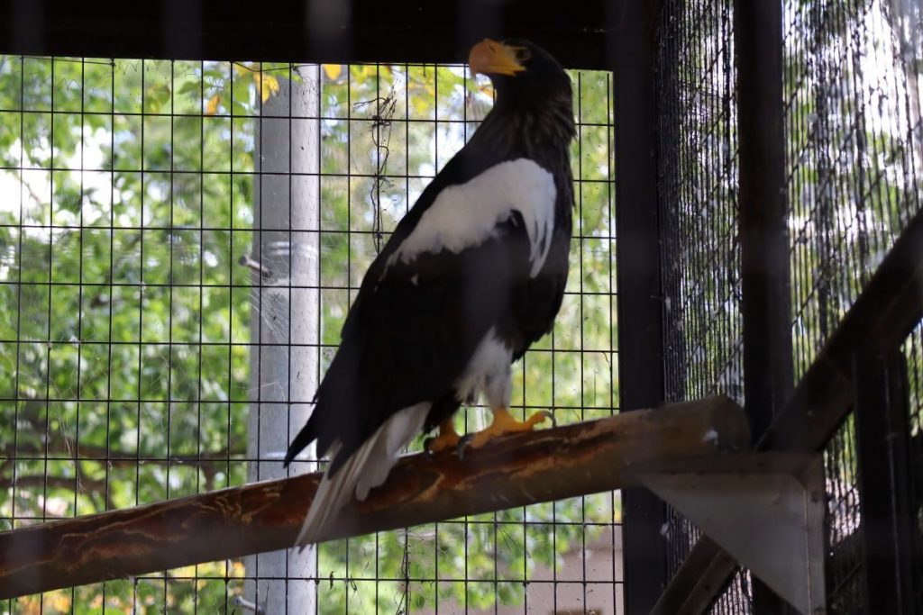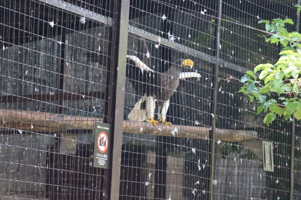 オオワシがケージ内で羽を広げてポージングしている姿も見ることができました。